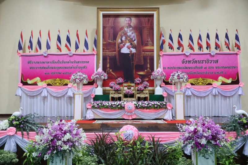 วันที่ 23 ตค 68 เวลา 08.00 น. นายธัชพงศ์ บัวนุช สหกรณ์จังหวัดนราธิวาส มอบหมายให้ นางสาวณนงปรัชญ์ อร่ามศักดิ์ ผู้อำนวยการกลุ่มส่งเสริมและพัฒนาธุรกิจสหกรณ์ พร้อมด้วยทีมกิจกรรมชุดที่ 1 เข้าร่วมพิธีวางพวงมาลาเพื่อถวายราชสักการะน้อมรำลึกเนื่องในวันคล้ายวันสวรรคตพระบาทสมเด็จพระจุลจอมเกล้าเจ้าอยู่หัว รัชกาลที่ 5 "วันปิยมหาราช" ซึ่งตรงกับวันที่ 23 ตุลาคม ของทุกปี ณ หอประชุมเฉลิมพระเกียรติ 7 รอบ พระชนมพรรษา ศาลากลางจังหวัดนราธิวาส แห่งที่ 1 อำเภอเมืองนราธิวาส จังหวัดนราธิวาส โดยมี นายวีรพัฒน์ บุณฑริก รองผู้ว่าราชการจังหวัด รักษาราชการแทน ผู้ว่าราชการจังหวัดนราธิวาส เป็นประธาน พร้อมด้วยส่วนราชการ หน่วยงานรัฐวิสาหกิจ องค์กรเอกชนและภาคประชาชน เข้าร่วมโดยพร้อมเพรียงกัน