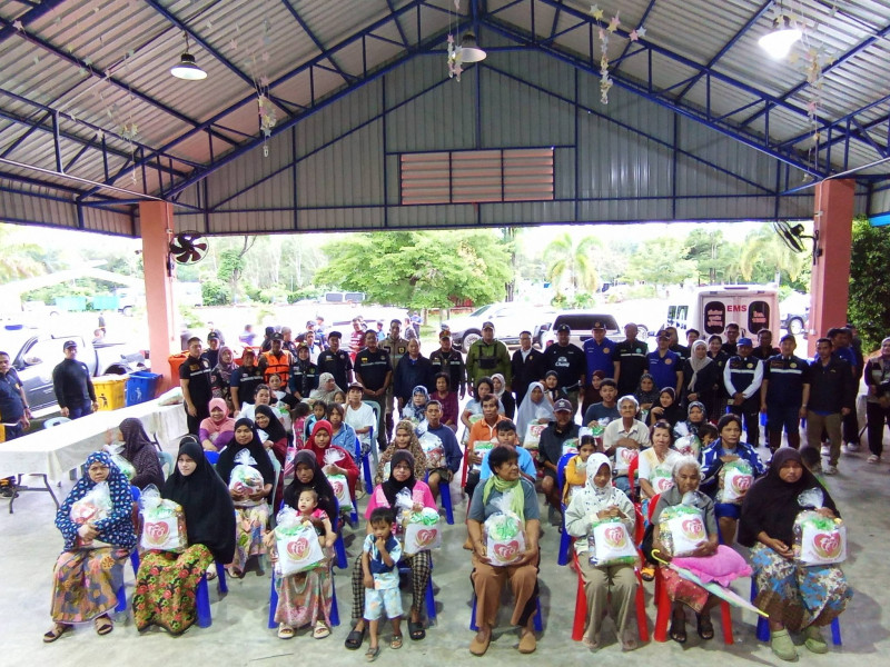 จุดที่ 2 เยี่ยมให้กำลังใจมอบถุงยังชีพ และศูนย์พักพิง ณ องค์การบริหารส่วนตำบลมะรือโบออก ต.มะรือโบออก