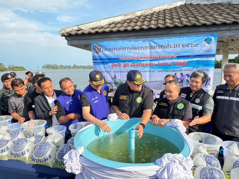 จากนั้นได้ชมนิทรรศการการเลี้ยงปลากุเรา การเลี้ยงปูคอนโด และได้ร่วมปล่อยพันธุ์สัตว์น้ำ (กุ้งทะเล ปูม้า ปลากะพงขาว) จำนวน 23 ล้านตัว ลงสู่แม่น้ำตากใบ เพื่อเป็นการฟื้นฟูทรัพยากรสัตว์น้ำ สร้างความสมดุลให้กับระบบนิเวศและส่งเสริมความมั่นคงทางอาหารอย่างยั่งยืน ต่อไป ณ ศูนย์วิจัยและพัฒนาประมงทะเลนราธิวาส อำเภอตากใบ จังหวัดนราธิวาส