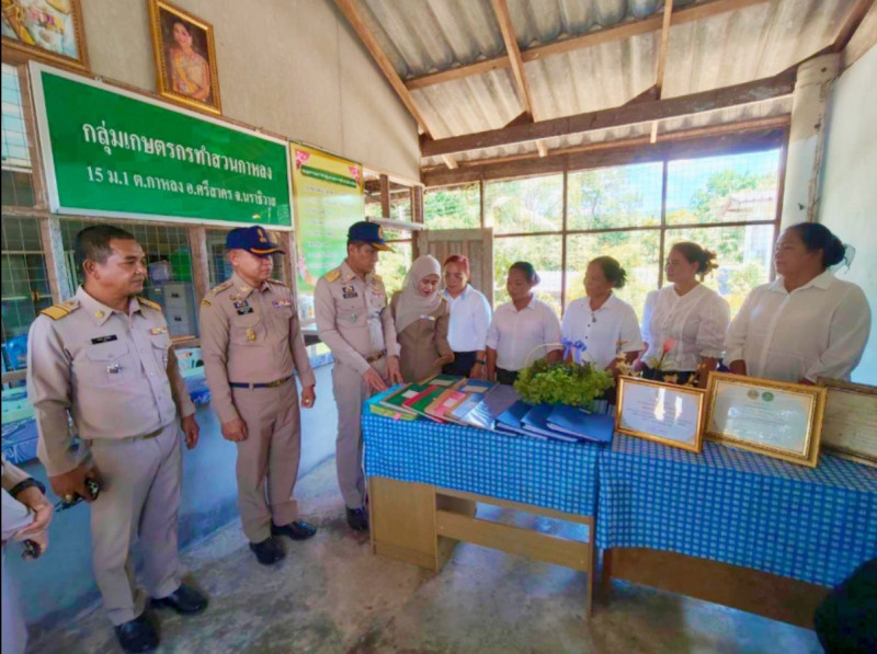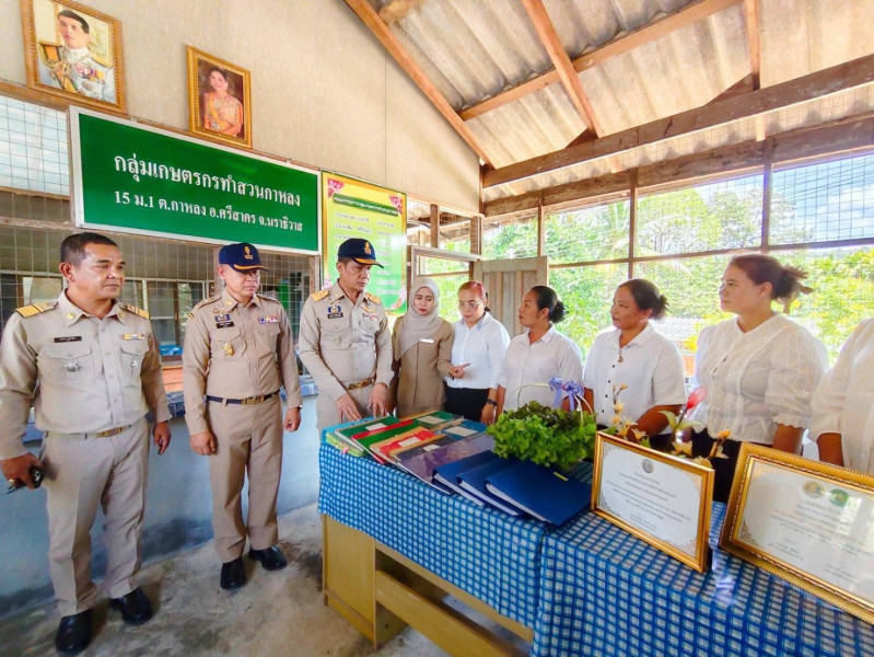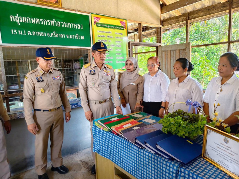 ในการนี้ ผู้ว่าราชการจังหวัดพร้อมคณะฯ ได้เข้าตรวจเยี่ยมและติดตามผลการดำเนินงานของกลุ่มเกษตรกรทำสวนกาหลง พร้อมทั้งให้กำลังใจให้กับคณะกรรมการดำเนินการ ณ ที่ทำการกลุ่มเกษตรกรทำสวนกาหลง อำเภอศรีสาคร จังหวัดนราธิวาส