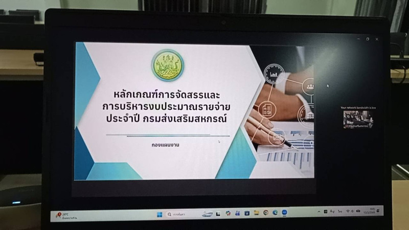 วันที่ 13 มีนาคม 2569 เวลา 9.30 น. นายธัชพงศ์ บัวนุช สหกรณ์จังหวัดนราธิวาส พร้อมด้วยผู้อำนวยการกลุ่มงานวิชาการ กลุ่มส่งเสริมสหกรณ์ หัวหน้าฝ่ายบริหารทั่วไปและบุคลากรที่เกี่ยวข้อง ร่วมประชุมชี้แจงรายละเอียดกรอบการประเมินและตัวชี้วัดผลการปฏิบัติงานและผลการใช้จ่ายงบประมาณของสำนักงานสหกรณ์จังหวัดและสำนักงานส่งเสริมสหกรณ์กรุงเทพฯ พื้นที่ 1 และ 2 ประจำปีงบประมาณ พ.ศ.2569 ผ่านระบบ Zoom Meeting ณ ห้องประชุมสำนักงานสหกรณ์จังหวัดนราธิวาส โดยมีนายนาถ บำรุงพาณิชย์ ผู้อำนวยการกองแผนงาน ได้ชี้แจงหลักเกณฑ์การจัดสรรและการบริหารงบประมาณรายจ่ายประจำปีของกรมส่งเสริมสหกรณ์ (ฉบับปรับปรุง) เดือนมกราคม 2569 และ กรอบการประเมินและตัวชี้วัดผลการปฏิบัติงานและผลการใช้จ่ายงบประมาณ ของสำนักงานสหกรณ์จังหวัดและสำนักงานส่งเสริมสหกรณ์กรุงเทพมหานคร พื้นที่ 1 และ 2 ประจำปีงบประมาณ พ.ศ.2569